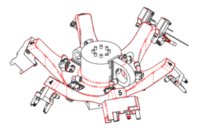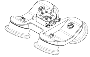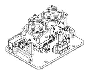 Robotsko prijemalo za 4 kosi.Robotsko prijemalo podolgovatega kosa.