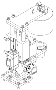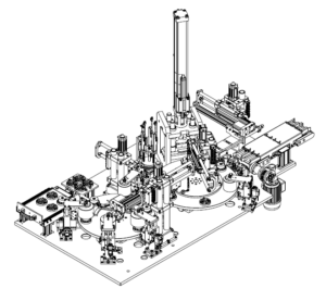 Robotska celica za sestavo, prešanje, čiščenje, kompletiranje in pakiranje izdelkov. 2 SCARA robota.