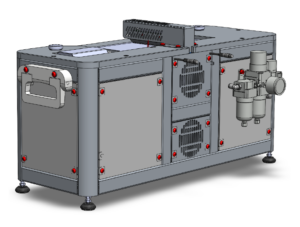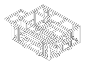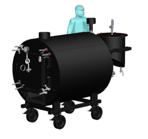 Pirolizna enota za 0,8 m3 biomase. Vodoravna postavitev.