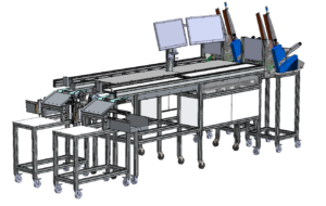 Delovna postaja za kontrolo, označevanje, opremljanje izdelka.Delovna postaja za kontrolo svetlobne prevodnosti izdelka.